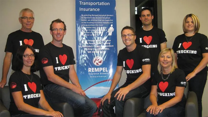 September 1, 2013 to September 7,2013 is designated National Trucking Week. In support of this year’s industry celebration, the team at Rempel Insurance Brokers ordered “I Love Trucking” shirts. Thursday, September 5th the Rempel Insurance team took the opportunity to say THANK YOU to the industry by wearing their shirts to work. Rempel Insurance is the largest independent trucking insurance broker in Manitoba.