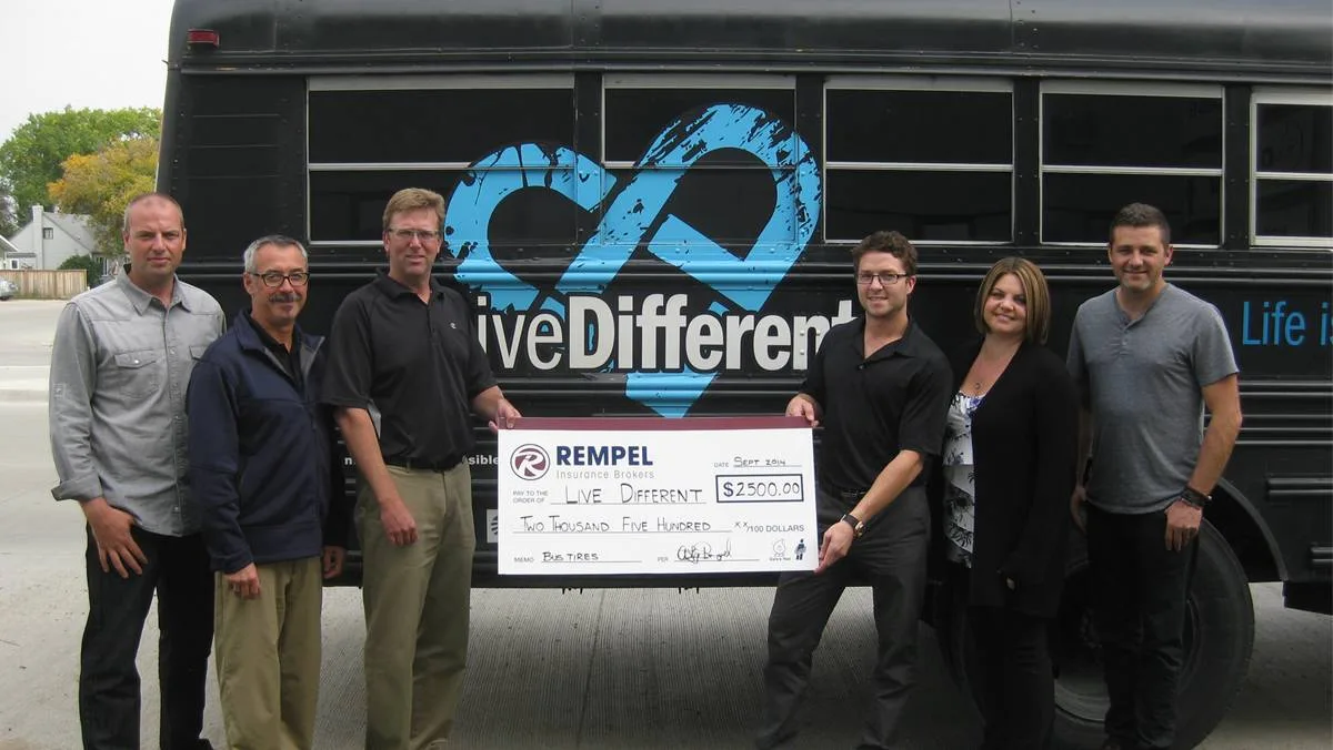 Live Different relies on volunteers and donations to help spread their message of kindness. This year they needed to replace the buses that transport the students to high schools across Canada. Rempel Insurance has stepped up to lend a helping hand! Our donation of $2500.00 was used to purchase tires for a new bus and keep this team on the road!