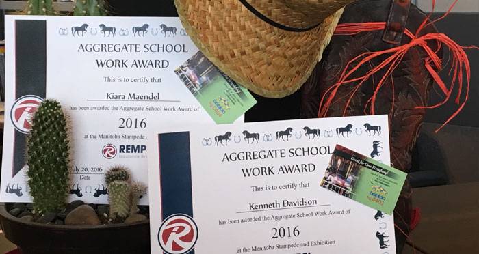 Congratulations to Kiara Maendel and Kenneth Davidson!! Both received a 4 day midway ride bracelet, for girl and boy aggregate winners of the schoolwork competition sponsored by Rempel Insurance at the Manitoba Stampede & Exhibition.